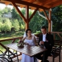 Umiejscowiony w malowniczej scenerii, otoczony drzewami i łąkami, poniżej znajduje się staw rybny (kilka gat. ryb)
